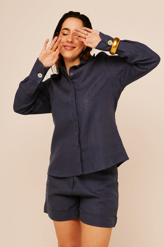 Camisa Anna Manga Longa - Linho Azul Marinho
