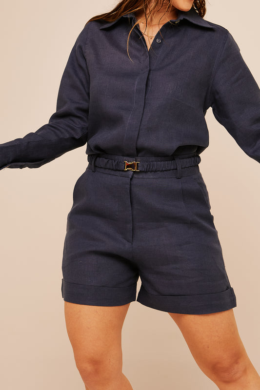Short Gio - Linho Azul Marinho