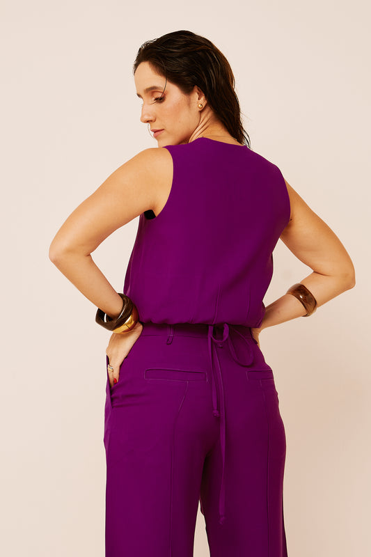 Calça Pantalona Elizabeth – Crepe Roxo Ameixa