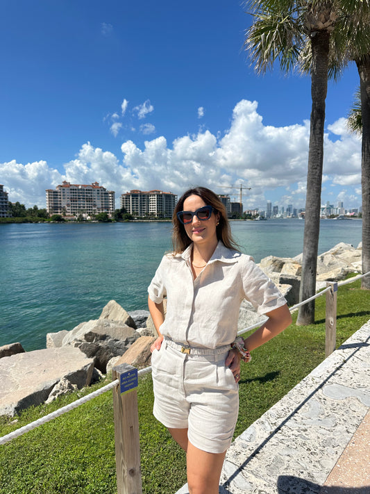 Camisa Anna Manga Curta- Linho Rose Macaron