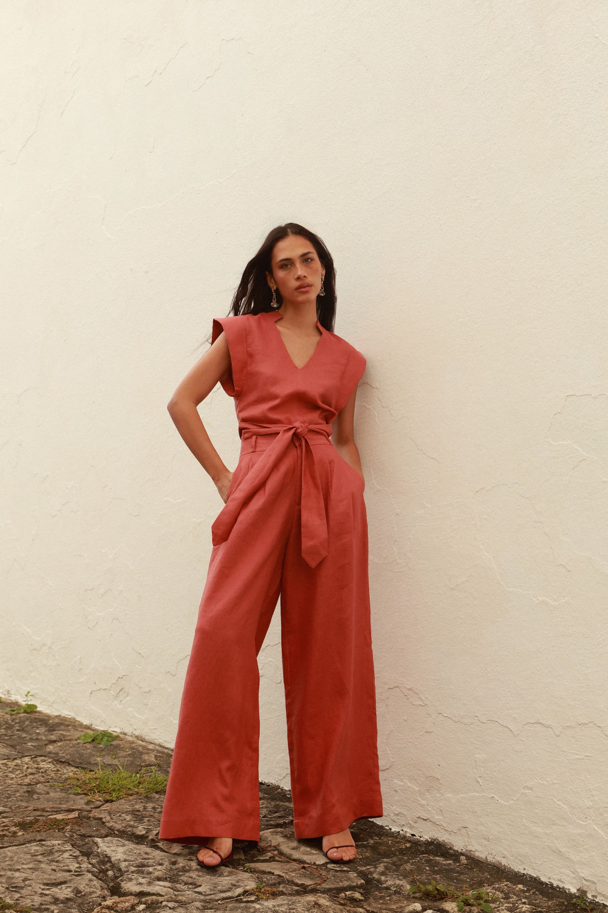 A pantalona Thaisa Terracota é feito de linho puro e possui uma modelagem para um caimento perfeito. O fechamento com zíper frontal e colchetes garante um ajuste seguro e confortável. Ideal para quem busca uma calça elegante e versátil.