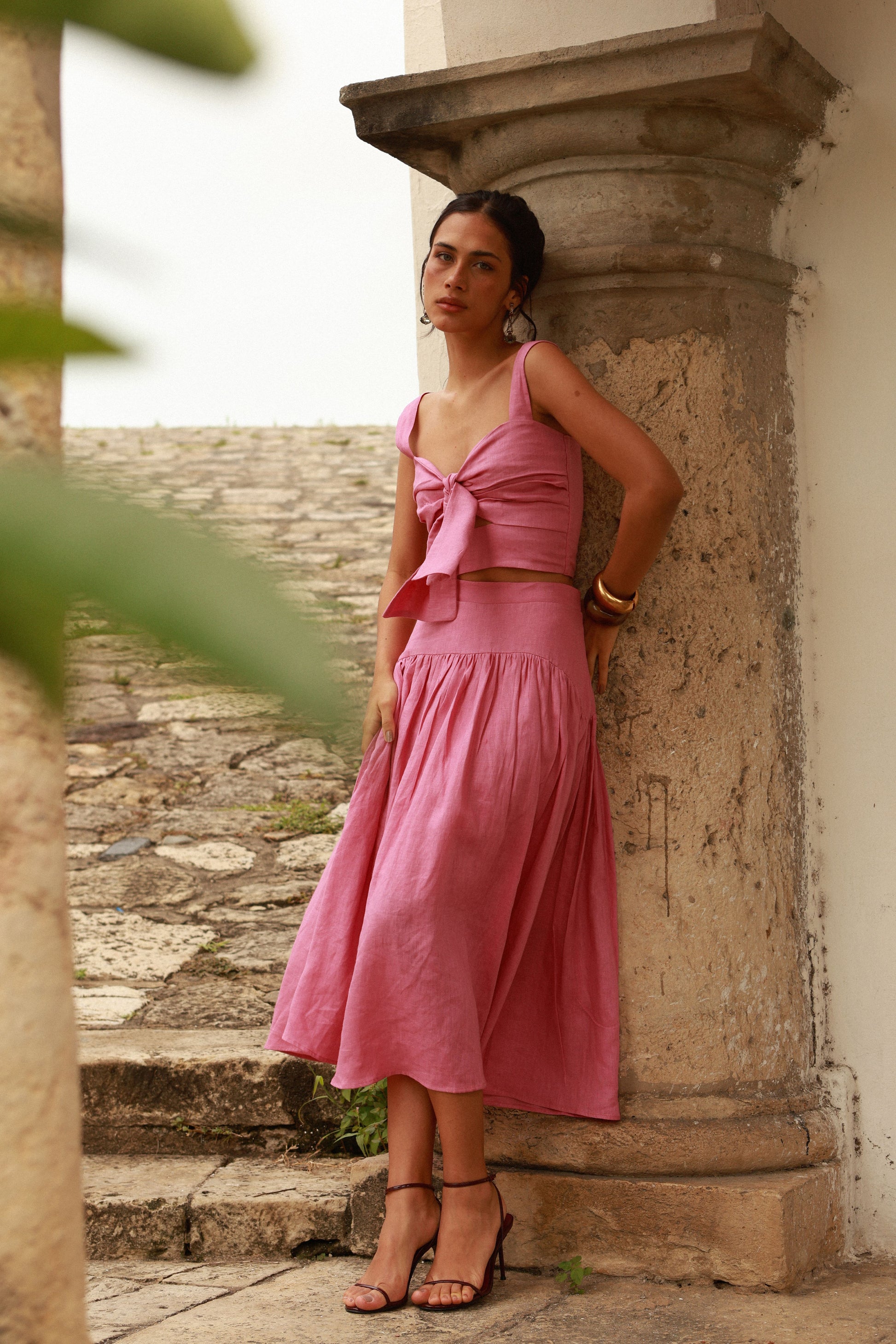 Saia Sophie - Linho Rosa Carnation